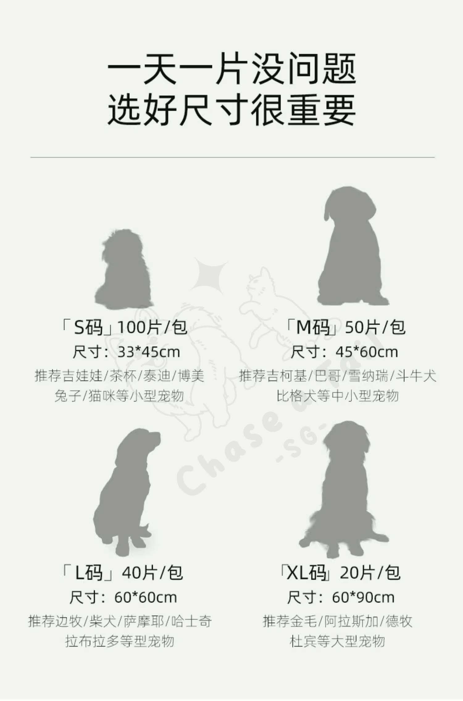 • Available in Multiple Sizes: Whether you have a small puppy or a large dog, Activated Carbon Pee Pads come in various sizes to fit your needs. Refer to the sizing chart to find the best fit for your dog.