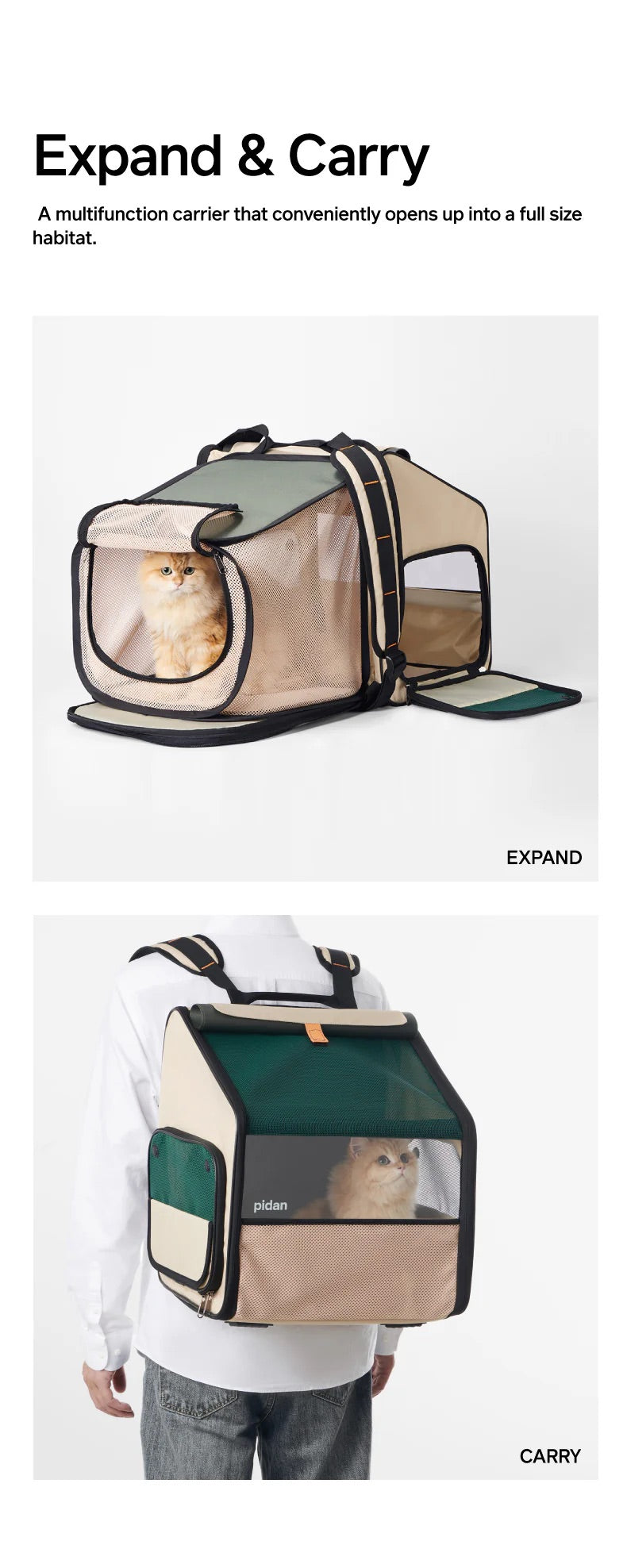 Introducing the Pidan Expandable Travel Habitat Carrier, the ultimate travel solution for your smaller pets. This carrier redefines pet comfort and owner convenience, blending innovative design with the practical needs of modern pet travel.