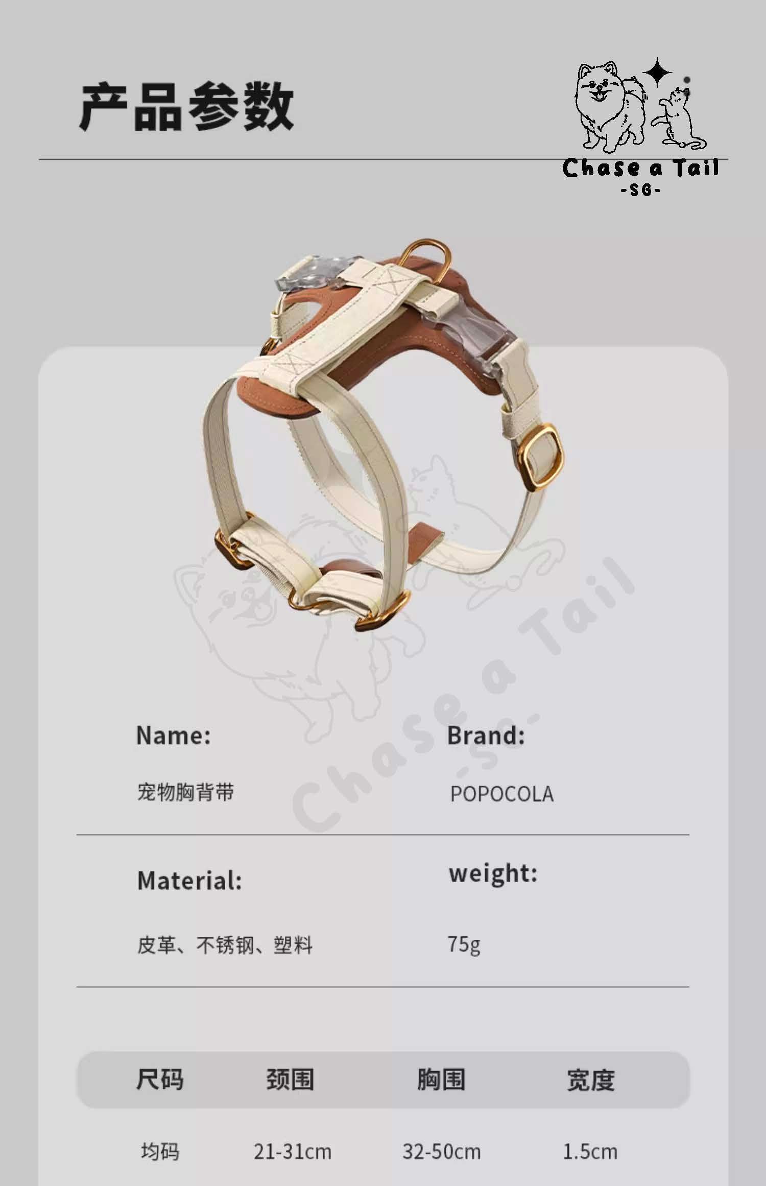 Popocola Soft Leather Adjustable Pet Harness and Leash Set