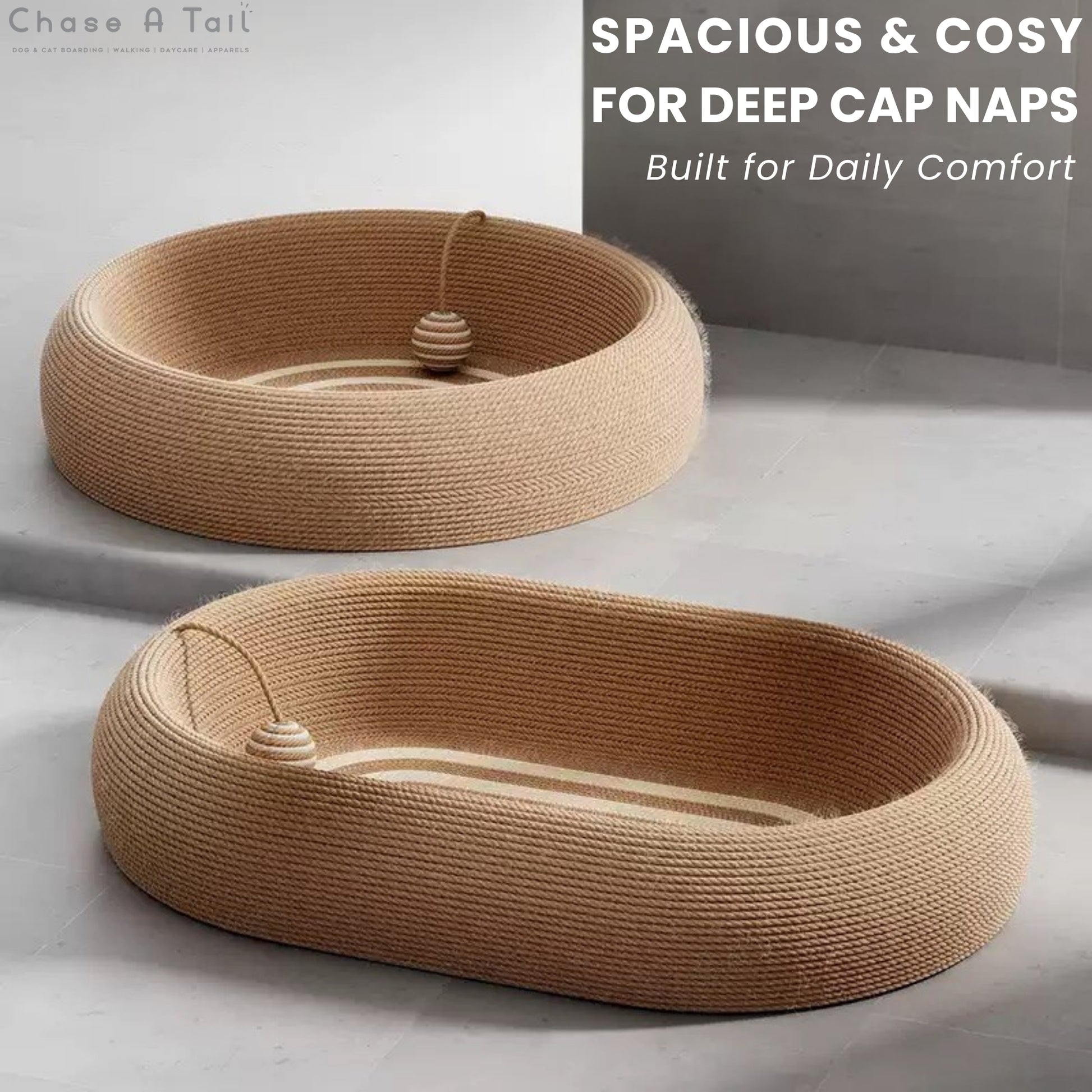 Give your cat the ultimate scratching experience with the NEW Deeper & Wider Sisal Scratch Board! Designed with extra depth and width, it offers more space for happy claws to stretch and play. Made from durable sisal, it helps keep your furniture safe while keeping your furry friend entertained and satisfied. Perfect for energetic cats who love to scratch and climb!